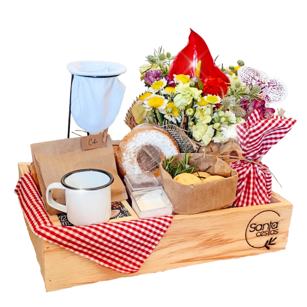 Acreditamos que servir é uma forma de amar, e é isso que colocamos em cada detalhe. Na Santa Cesta, você encontra cestas de café da manhã, tábuas de frios e presentes corporativos preparados com carinho, para surpreender quem você ama.